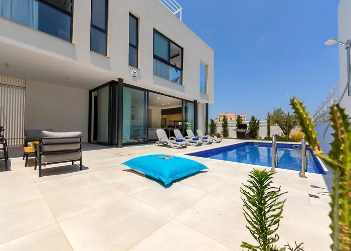 La Protaras Almaria Villa 16 está situada en el barrio Pernera, a una distancia de 6 km del Centro de Información Turística de Ayia Napa, y cuenta con una piscina y vistas a la piscina. Los huéspedes pueden practicar windsurf, submarinismo y piragüismo en esta villa, situada a una distancia de 6 km del Monasterio de Ayia Napa.